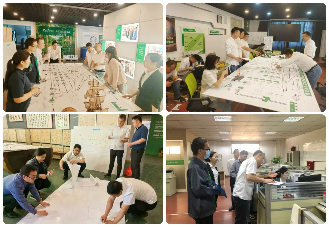 此次價(jià)值流精益改善周,對主要產(chǎn)品的工藝流、信息流、實(shí)物流等進(jìn)行現(xiàn)場調(diào)研,數(shù)據(jù)搜集,逆流生產(chǎn)全程,發(fā)現(xiàn)當(dāng)下整個(gè)生產(chǎn)經(jīng)營中存在的 “爆破點(diǎn)”從而尋找改進(jìn)機(jī)會(huì),優(yōu)化全流程,最后形成產(chǎn)品未來價(jià)值流圖。